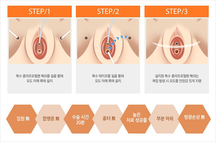 복압성 요실금의 가장 중요한 치료입니다. 가장 빠른 시간에 가장 좋은 효과를 내는 방법입니다.